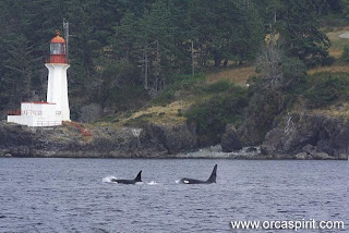 On our afternoon trip aboard the Orca Spirit, we travelled into Juan De Fuca Strait a few miles south of Beechey Head where a group of transient orcas had been located. The group of 4 transient orcas were identified as the T30's that included a mature male known as T30A. It is always a pleasure to view transient orcas as you never really know what they will do. Transient orcas in full hunting mode are truly a sight to behold. Last year, T30A thrilled (or mortified some of) our guests with an amazing encounter with a harbour seal. He was carrying the poor animal in his mouth right behind our boat for several minutes. It was an amazing encounter, one that I will not soon forget. Today, we witnessed resting behaviour and we were able to watch as all for of the animals, the mother T30 and her offspring T30A, T30B and young calf T30C surfaced and dove in unison. A stop by Race Rocks on the way in to view harbour seals, elephant seals and both Steller and